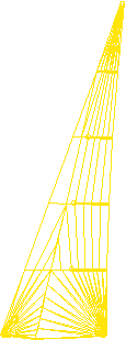 これらの特徴から、横方向の継ぎ目はミシンで縫い合わせ、それ以外の継ぎ目は接着剤による接着とし、パネルセイルでの究極のセイルシェイプの保持と軽量化を実現しました。 |